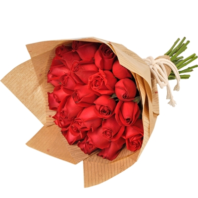 . 24 Rosas Vermelhas Nacionais ornado com papel kraft e laço para presente.