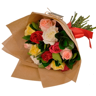 Lindo buquê com 12 rosas nacionais coloridas, embalado com celofane e laço de fita cetim. Presente perfeito para homenagear em qualquer ocasião pessoas queridas e especiais.