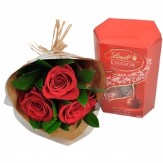 Buquê com 3 Rosas Vermelhas e chocolate Lindt