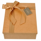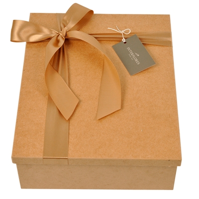 . 01 Caixa madeira MDF crua, com tampa decorada com laço e embalada com celofane para presente.