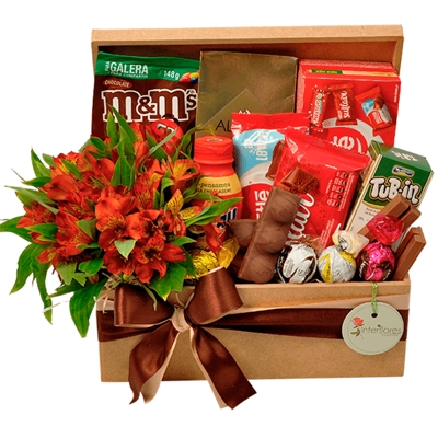 Maravilhosa Cesta com Chocolate e Buquê de Flores para você presentear em qualquer época do ano, como Páscoa, Aniversários, Dia Namorados e outras ocasiões.