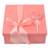 . 01 Caixa madeira MDF com pintura artesanal, decorada com laço de fita cetim e pirulito, embalada para presente.