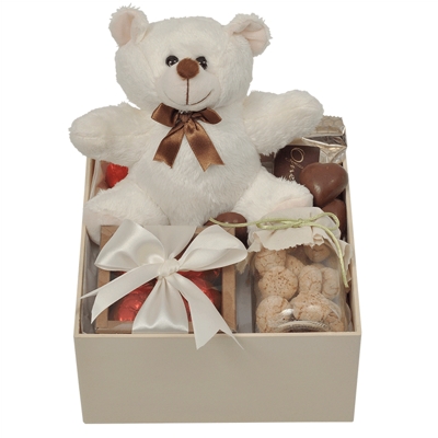 Quer presentear com chocolates aquela pessoa especial, e sem gastar muito? Esta cesta simples de chocolates e Ursinho pelúcia é uma excelente opção. Unimos qualidade, preço e bom gosto, nesta linda caixa!